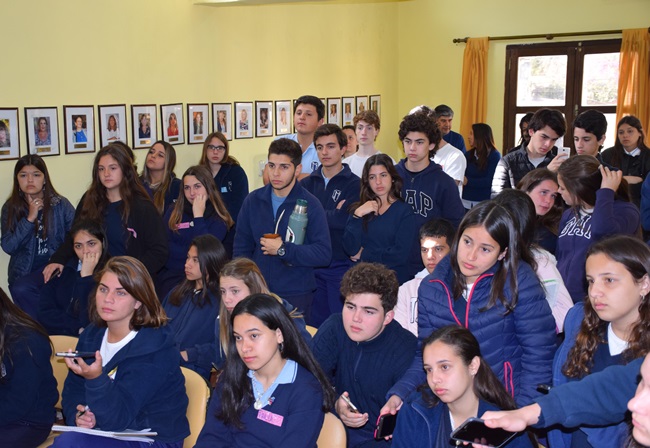 La visita estuvo encabezada por la profesora Paola Campestrini. En primer término fueron al Concejo Deliberante, más precisamente las oficinas del mismo donde fueron guiados por el presidente del HCD Rodolfo Santini y la secretaria María Cristina Marín, acompañados por varios ediles, quienes les explicaron la función de cada dirección del HCD.
