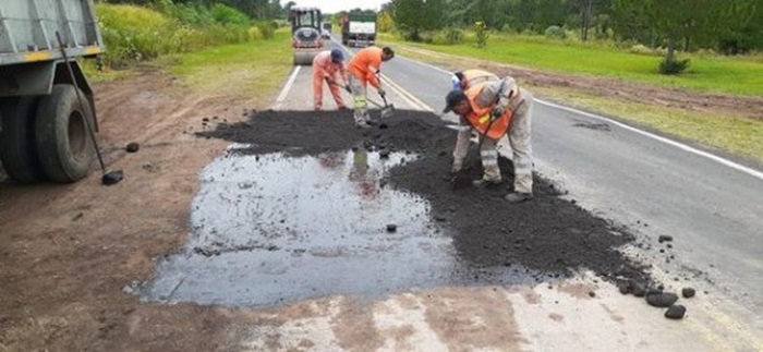 En la zona de Paso San Juan, entre Goya y Esquina; sobre la Ruta Nacional 12 y en la Ruta Nacional 127, departamento de Curuzú Cuatiá, diferentes cuadrillas de operarios ejecutaron tarea de relleno de pozos y baches con material premezclado.