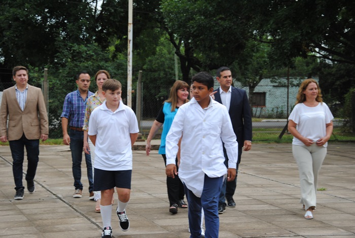 Primeramente, se acercó a la Escuela N°7 Juan Balestra, pasadas las 8hs de este lunes 26, dónde su directora Gladis Saucedo recibió a las visitas y luego del acto protocolar, izamiento, recibimiento de la bandera y entonación del himno nacional dio la bienvenida a los alumnos y posterior el intendente dejó inaugurado el ciclo escolar. El acto se cerró con la presentación de las docentes para cada grado y sección.